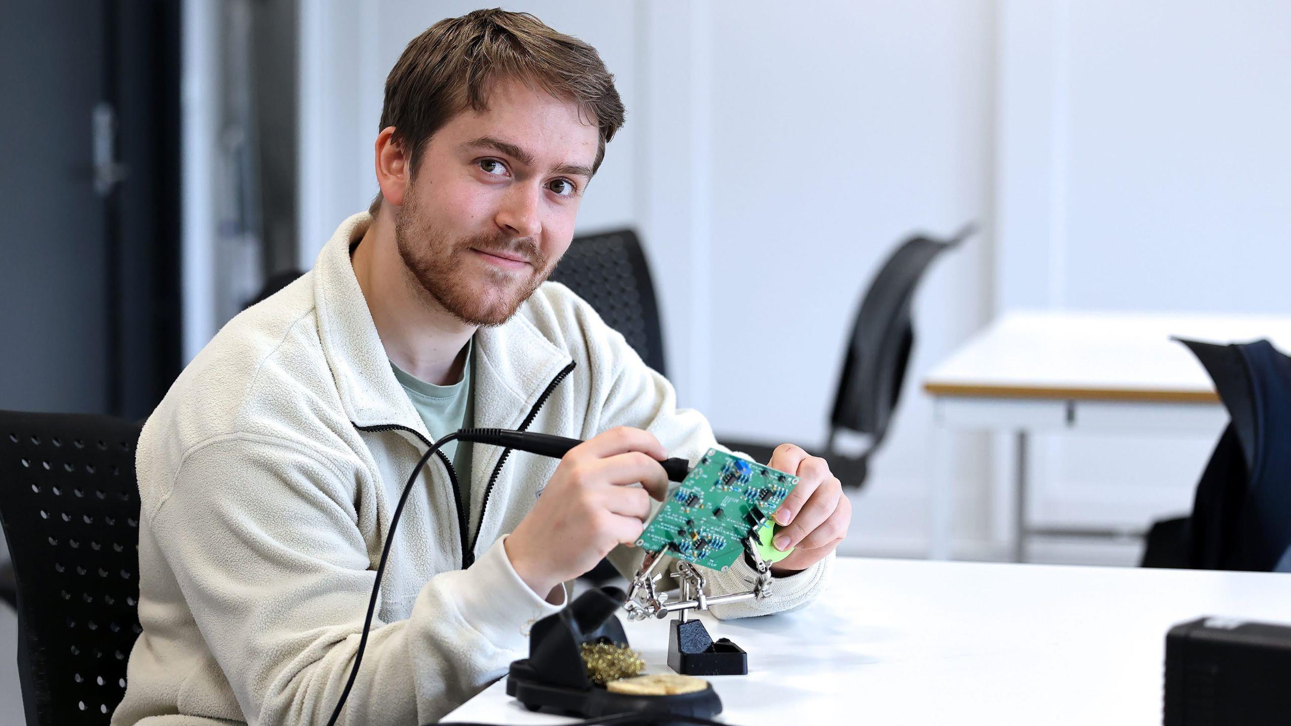 Martin har aldri tvilt på at han ønskjer å jobbe innan automasjon. No, etter tre år på HVL, har han fått kjenne på korleis det er å jobbe med det han trivst best med: robotar. På studiet elektroingeniør kan du i andre året spesialisere deg innan robotikk. Dette valde Martin å gjere.