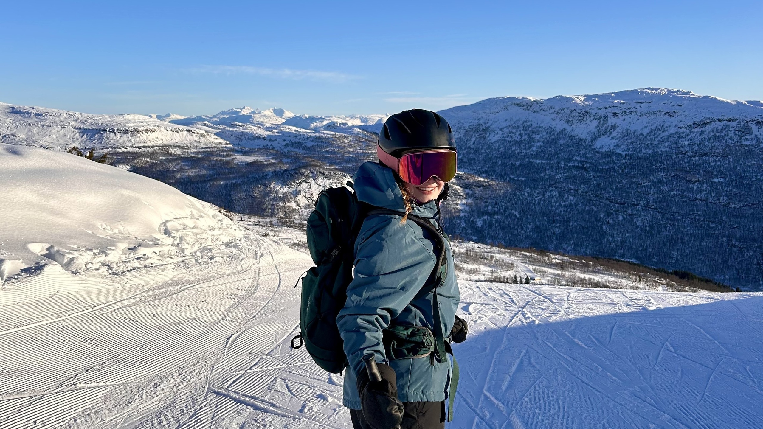 Helene trivst godt i Sogndal med det aktive studentmiljøet som er der. Ho likar seg godt ute i naturen og set pris på moglegheitene ho har til friluftsliv.