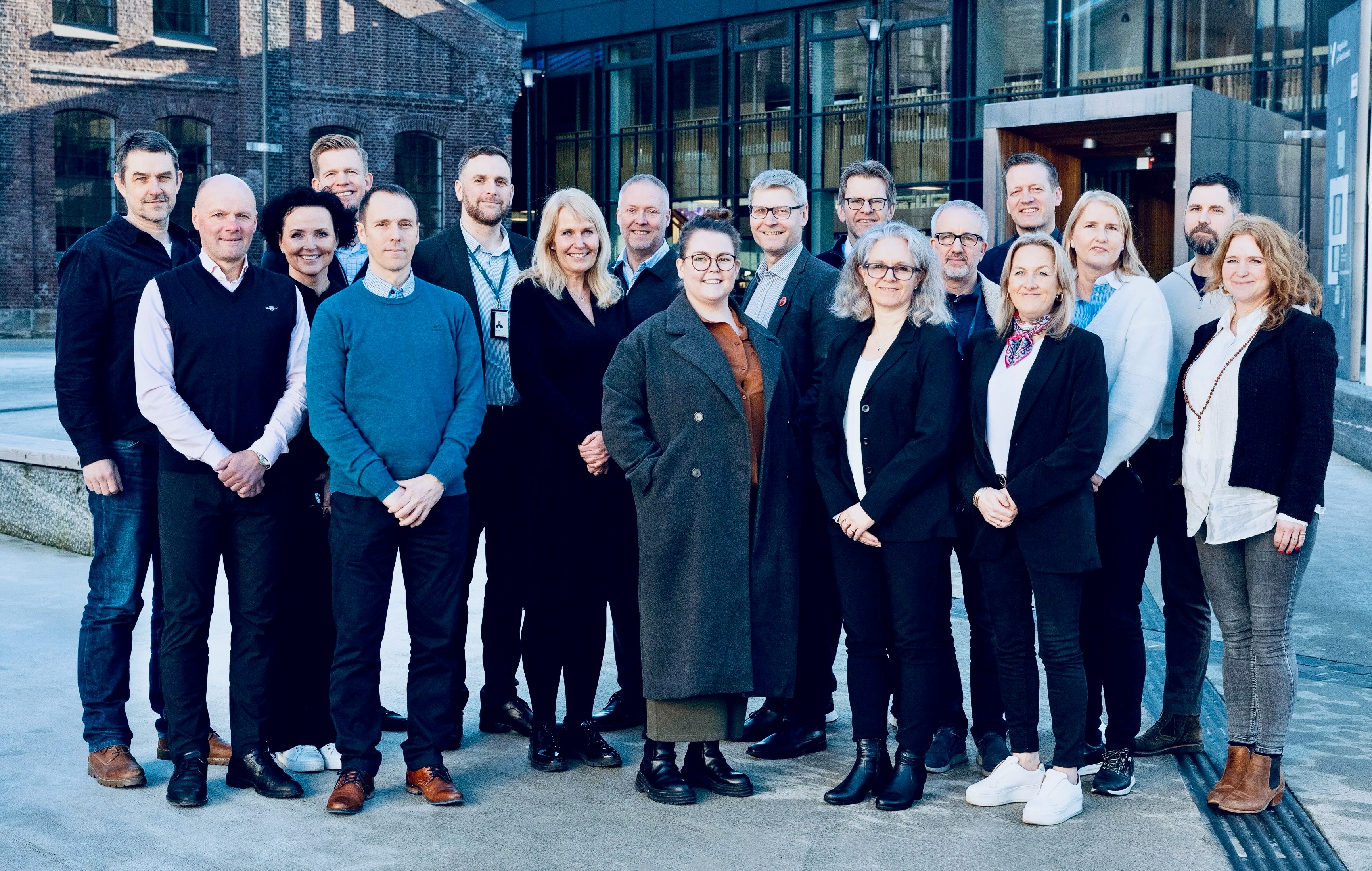 Frå venstre: Martin Aas, Harald Borge, Astrid Kjellevold, Fredrik Aasebø, Frank Erik Hansen, John Tveit, Trude Matthisen, Brede Sømoen, Guro Vik Kvalsund, Arne Liljedahl Lynngård, Hallvard Klakegg, Cathrine Lie Otteraaen, Oded Ben-Horin, Else Cathrine Lütcherath Rustad, Sverre Simen Hov, Anja Solli, Egil Grønner og Gabrielle Fosby Osborne (Foto: Mauricio Esteban Pavez Ramirez, HVL).
